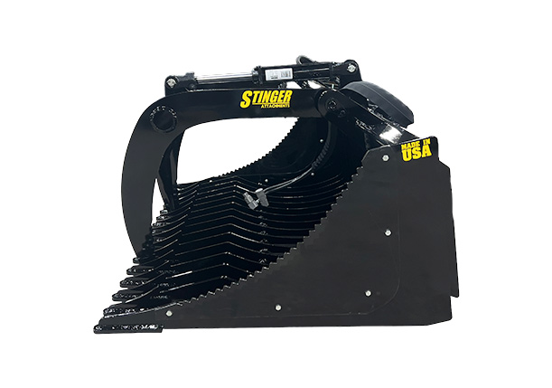 Our 48-inch rock grapple bucket is designed with tight areas in mind. It has open sides and straight tines along the bottom, allowing you to secure large items between the grapple and the bucket. Our compact rock grapple bucket also has removable sides for added convenience.