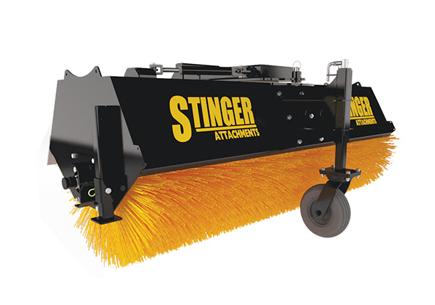 If you want a broom for your skid steer, choose one from Stinger Attachments. Our angle broom comes in three sizes: 72 inches, 84 inches and 96 inches in width. It is ideal for commercial, construction or municipal operations, including in: Warehouses, Parking lots, Machine sheds, Job sites, and Dust containment.