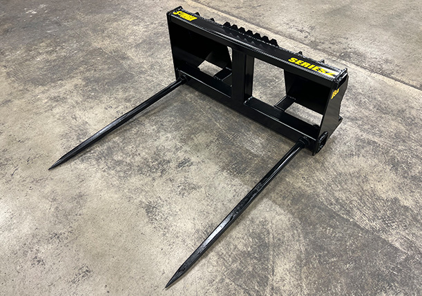 The Stinger Attachments Series 2 Bale Spear is a perfect piece of equipment for any farmer, or rancher who wants to move medium to large round bales or square bales. It is configured in two tine design spaced 39” apart on center. The design is available with multiple tine lengths including 39”, 43”, or 49”. All of our bale attachments feature heavy duty design and come standard with replaceable tines.