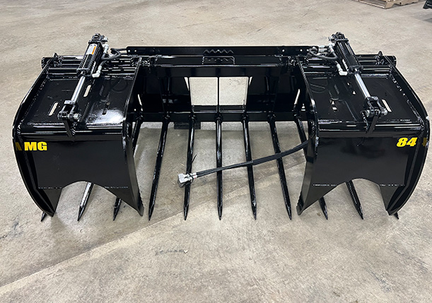 This skid steer manure grapple is the perfect piece of equipment for large and small agricultural and livestock producers. The manure grapple (ag grapple) is ideal for livestock chores such feeding, spreading bedding, or removing pen pack. It works excellent for getting under loose or matted material such as livestock bedding or silage. This bucket is also versatile enough to work effectively in a variety of other tasks including trees, brush and debris removal. The grapples are effective in grasping the product once the tines pry it loose. In the event a tine gets bent or broke they are completely replaceable. The 8” on-center spacing of the tines leaves an opening of approximately 6”, helping carry loose material. This has a standard open back and we offer a closed back option as well.