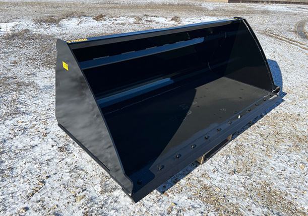 The Stinger Attachments High Volume Material Bucket is a step up from our Heavy-Duty Series 4 Material Bucket in both capacity and strength. These buckets are engineered to offer strength, durability, and high capacity to stand up to everyday use and aid in increasing efficiency of the largest skid steers on the market today. The High-Volume Material Buckets come standard with a ¼” Grade 50 Shell and ½” thick side braces. The buckets are also built with a top channel brace and bottom radius support to add strength. The bottom-radius support also aids for better clean out. This bucket features a 70-degree back angle which we have found to be a very good fit for most machines in the roll-back and dump positions at this rear bucket height. These buckets are available in sizes from 7-10’ widths and boast capacities of 1.5 to 2.2 cubic yards (struck) with both Weld-on and Bolt-on cut edges options. These buckets come standard with a universal skid steer mount plate with options for many other mounts including Global and many common ISO construction carriers. The Stinger Attachments High Volume Material Buckets is ideal for silage, manure, fertilizer or many other products in both agriculture and construction applications.
