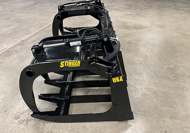 The skid steer root grapple is an absolute necessity on many job sites and in many environments. Open bottom framing allows the grapple to handle large trees, stumps, building material, rocks and much more while the small debris falls to the ground. Root grapples are very versatile, as the frontal tines allow the attachment to pull roots, small stumps, and rocks during land clearing. In demolition and storm cleanup, our innovative tines help to force the bucket into piles of debris and act as a wedge to push further and grab a larger amount of material per scoop. Two heavy-duty independent grapples powered by two 2500 psi cylinders have a massive 45? to 48? opening and are also completely removable in less than 10 minutes to make sure you can handle any job.