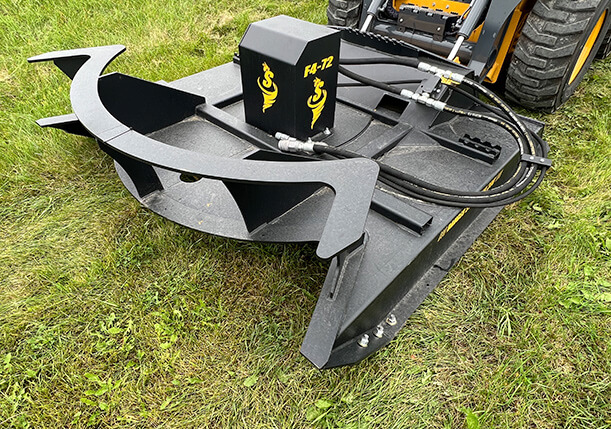 The Stinger Attachments Twister F4 Brush Cutter is a heavy-duty commercial cutter designed for large size machines. It is rated for up to 7” material and works well for general property maintenance to aid in controlling or cleaning up tall grass, weeds, and large brush. The Twister F4 cutter utilizes a direct drive Gear/Piston motor for long term reliability and requires 17-45 gpm hydraulic flow. The Stinger Attachments Twister F4 Brush Cutter is built in the USA with high quality materials and workmanship for reliability to get the job done.